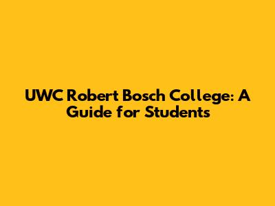 UWC Robert Bosch College: A Guide For Students