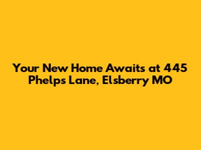 Hey guys! Are you on the hunt for a fantastic new place to call home? Well, get ready, because we've got an absolute gem for you at 445 Phelps Lane in Elsberry, Missouri, 63343. This isn't just any property; it's a chance to snag a piece of tranquility in a charming community. If you've been dreaming of a peaceful retreat with all the comforts of home, you're going to want to stick around. We're diving deep into what makes this Elsberry address so special, covering everything from its cozy interiors to its prime location. So, grab your favorite drink, get comfy, and let's explore why 445 Phelps Lane might just be the perfect fit for you and your family. We'll be talking about the key features, the lifestyle it offers, and what makes Elsberry, MO, a truly wonderful place to live. Get ready to be impressed!